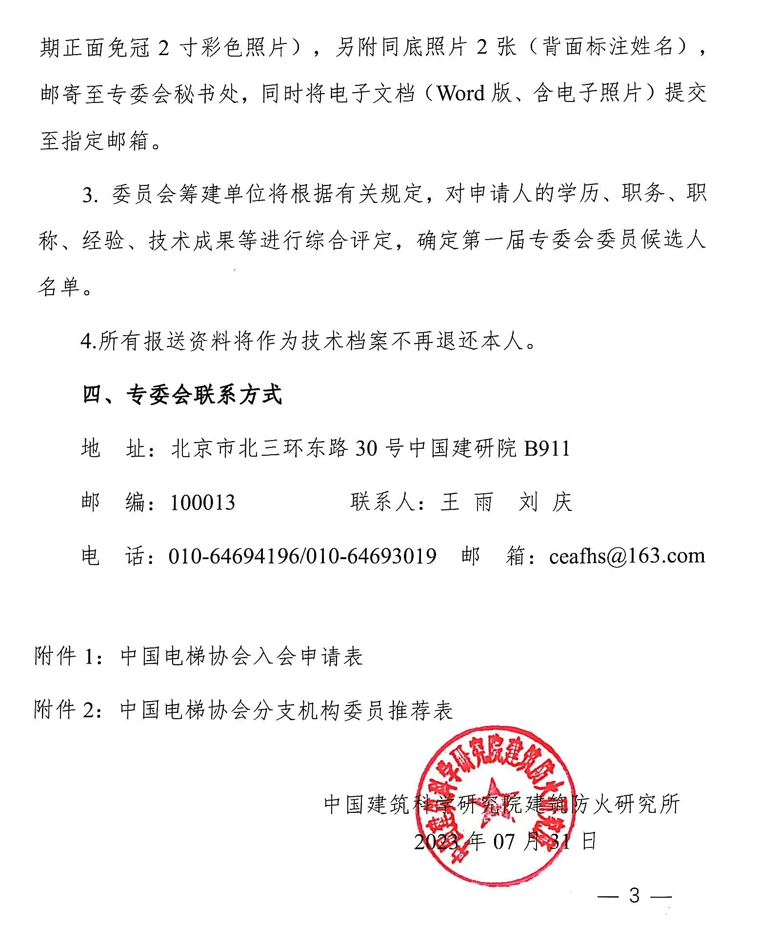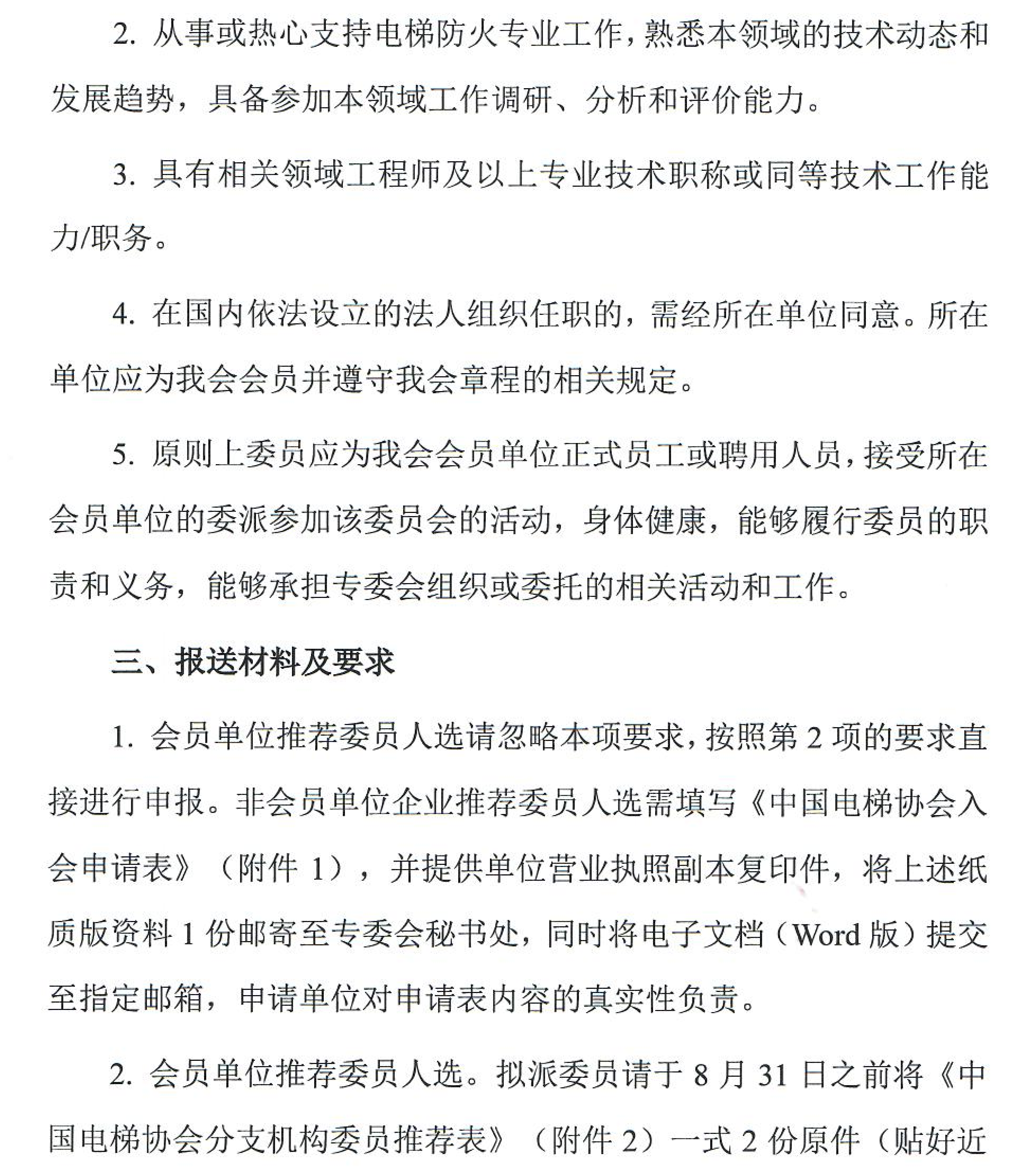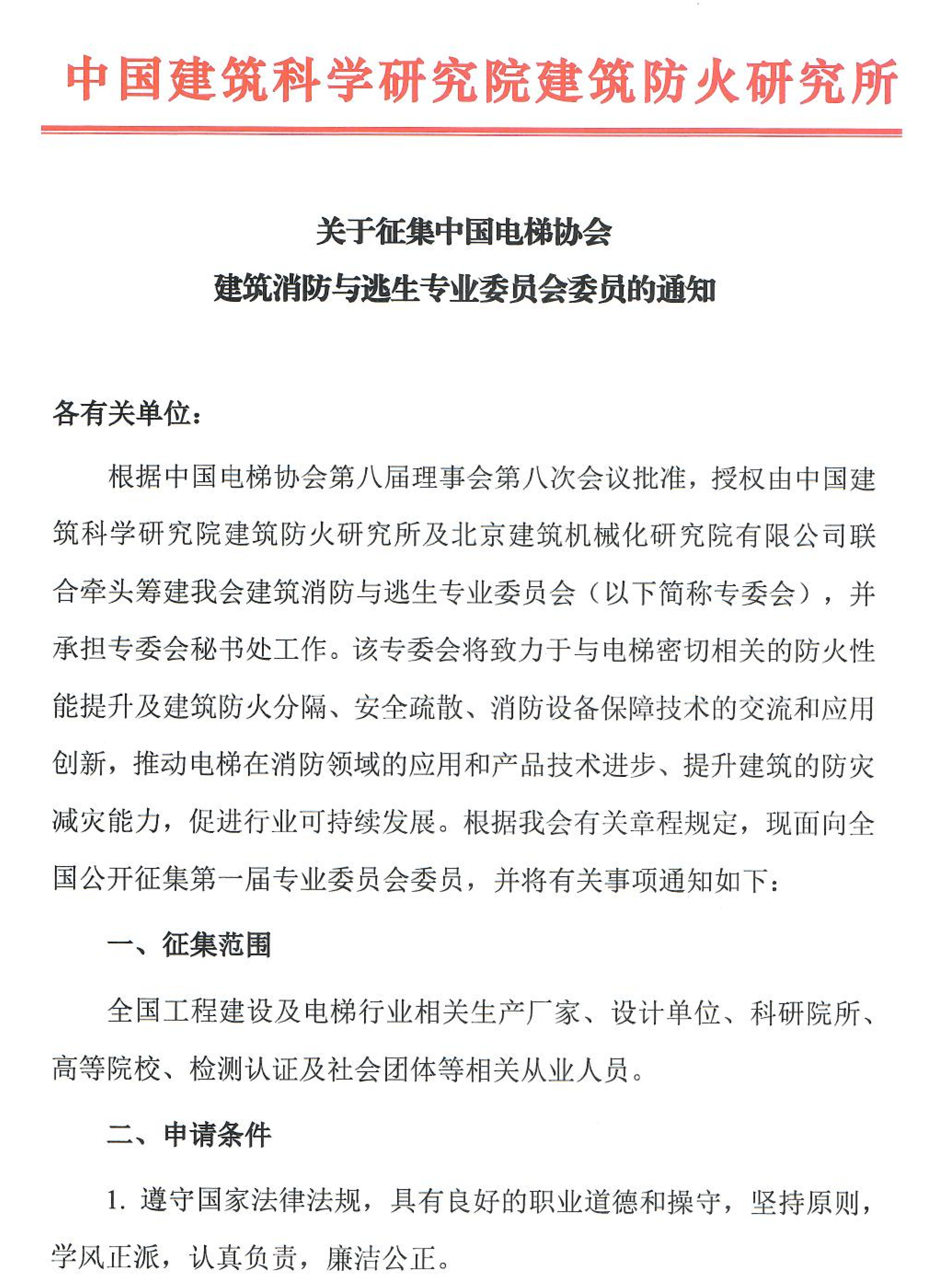 关于征集中国电梯协会建筑消防与逃生专业委员会委员的通知