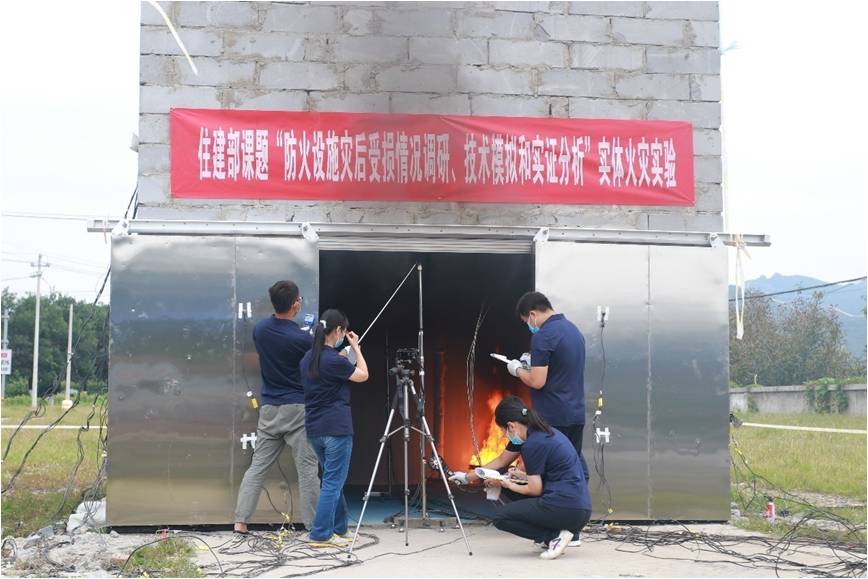 2021年9月15日,中国建筑科学研究院建筑防火研究所承担的住建部课题“防火设施灾后受损情况调研、技术模拟和实证分析”实体火灾实验在北京市平谷区举行。住房和城乡建设部建筑节能与科技司消防处处长张晓军、陆宇,防火所所长孙旋,中国建研院科技标准部副主任张靖岩,课题中期评审专家组等领导专家莅临现场指导观摩。本次实验得到了平谷消防支队、金海湖中队、金海湖镇政府的大力支持。